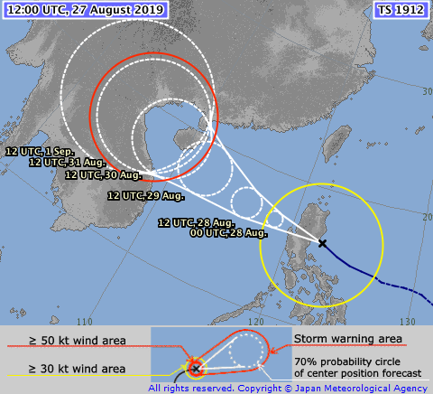 Er is op dit moment één tropische storm in de regio, Podul. Eerder deze maand waren er meerdere typhonen, waaronder categorie 4 typhoon Lekima die veel schade aanbracht in China en 90 slachtoffers veroorzaakte. Opvallend dat ik er persoonlijk niet veel over heb gehoord op het nieuws. Maar terug naar het heden, Podul trekt nu over de Filipijnen en zal rond donderdag/vrijdag aankomen in de buurt van China/Vietnam, als zware tropische storm en mogelijk een cat. 1 typhoon. Het grootste gevaar is de regen, met mogelijk 500+ mm in Vietnam. Er is één extra opmerking: HWRF (orkaan specifiek model) laat als enige een supertyphoon zien met windsnelheden tot 280 km/h en een kerndruk van 938 hPa. Ik zie zelf niet echt in hoe de huidige omstandigheden zoiets binnen zo'n korte termijn toelaten, maar als HWRF het zegt is dat zeker iets om in het achterhoofd te houden. Tropische storm/cat 1 waarschijnlijk, maar de modellen zijn nog niet helemaal in overeenstemming met elkaar.
