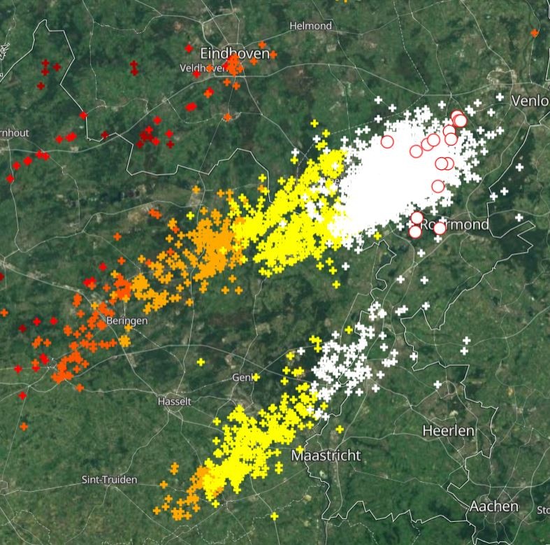 Ander deel blijft net ten zuiden. Donders zijn wel goed hard, zitten aardig wat CG's tussen volgens mij.