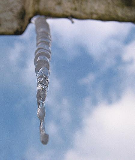 Ijs in de watertonnen dat omhoog gestuwd wordt: