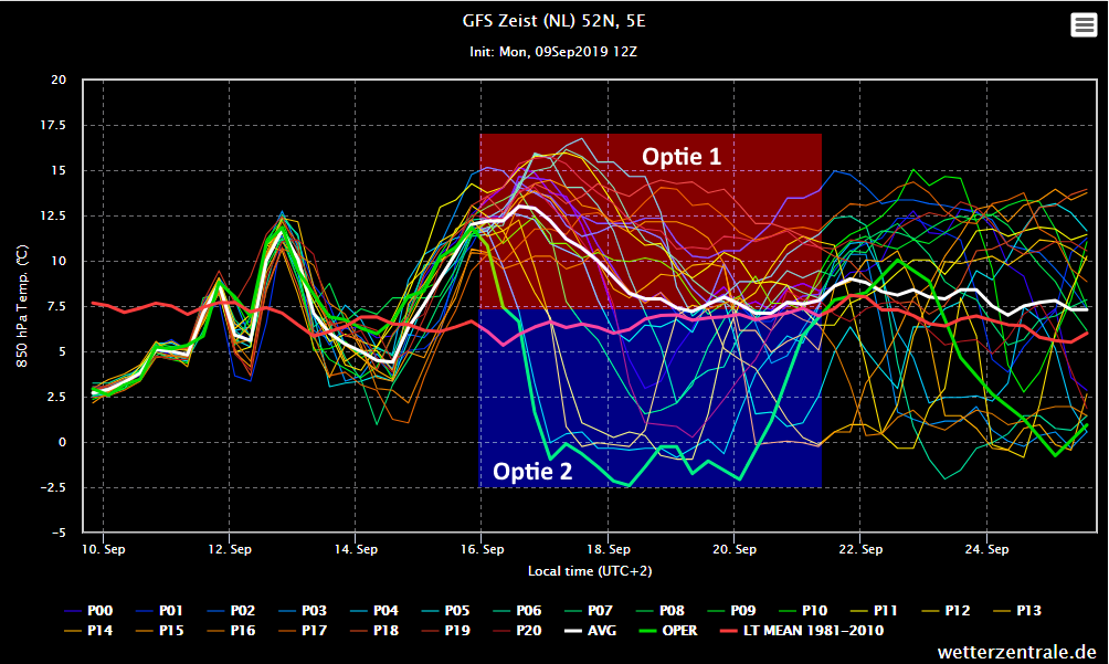 Optie 2 krijgt nog wel 20-30 procent steun op die termijn, niet zo heel gek dus die Oper alleen wel het lid met de koudste bovenlucht dus de prominentste noordweststroming.