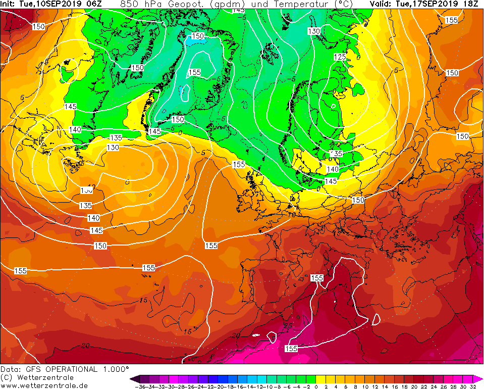 GFS 06z Oper zwakt het 'koele' scenario duidelijk wat af.