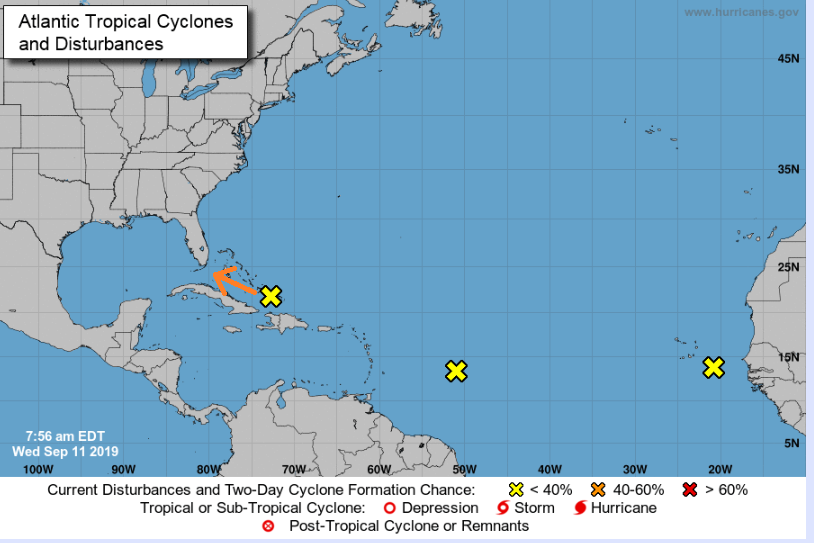 De depressie/buien die nu nog ten zuidoosten van Florida ligt heeft de komende 2 dagen geen kans om zich te organiseren, daar is de windschear te ongunstig voor. Echter daarna (vrijdag/zaterdag) is het gunstiger en zal hij daarna wellicht al een tropische depressie worden. De koers is nog onzeker, sommige modellen laten hem over de Golf van Mexico koersen.