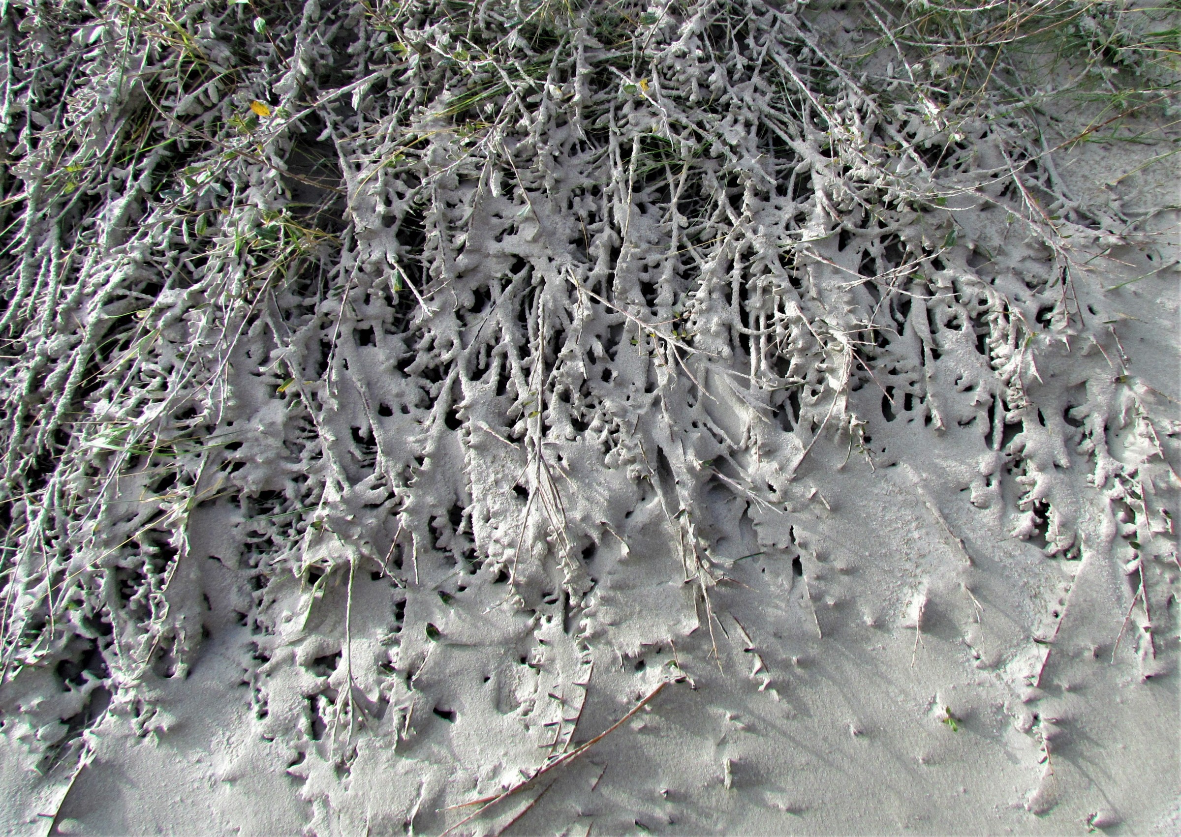 Regen en natte wilgen en tegelijk stuivend zand geeft dit resutaat: