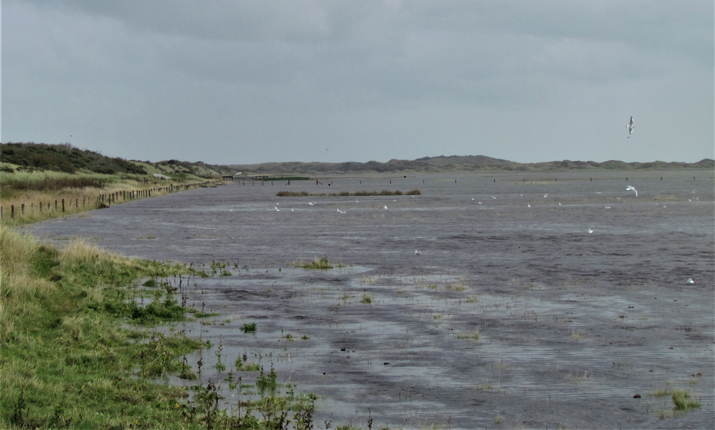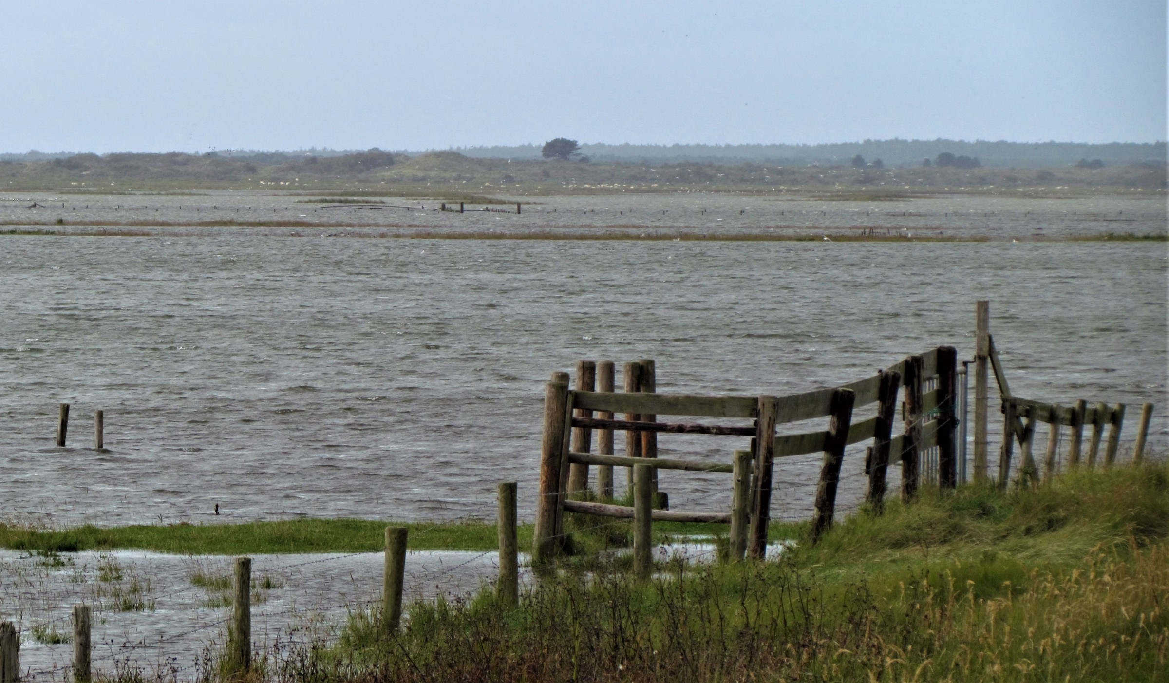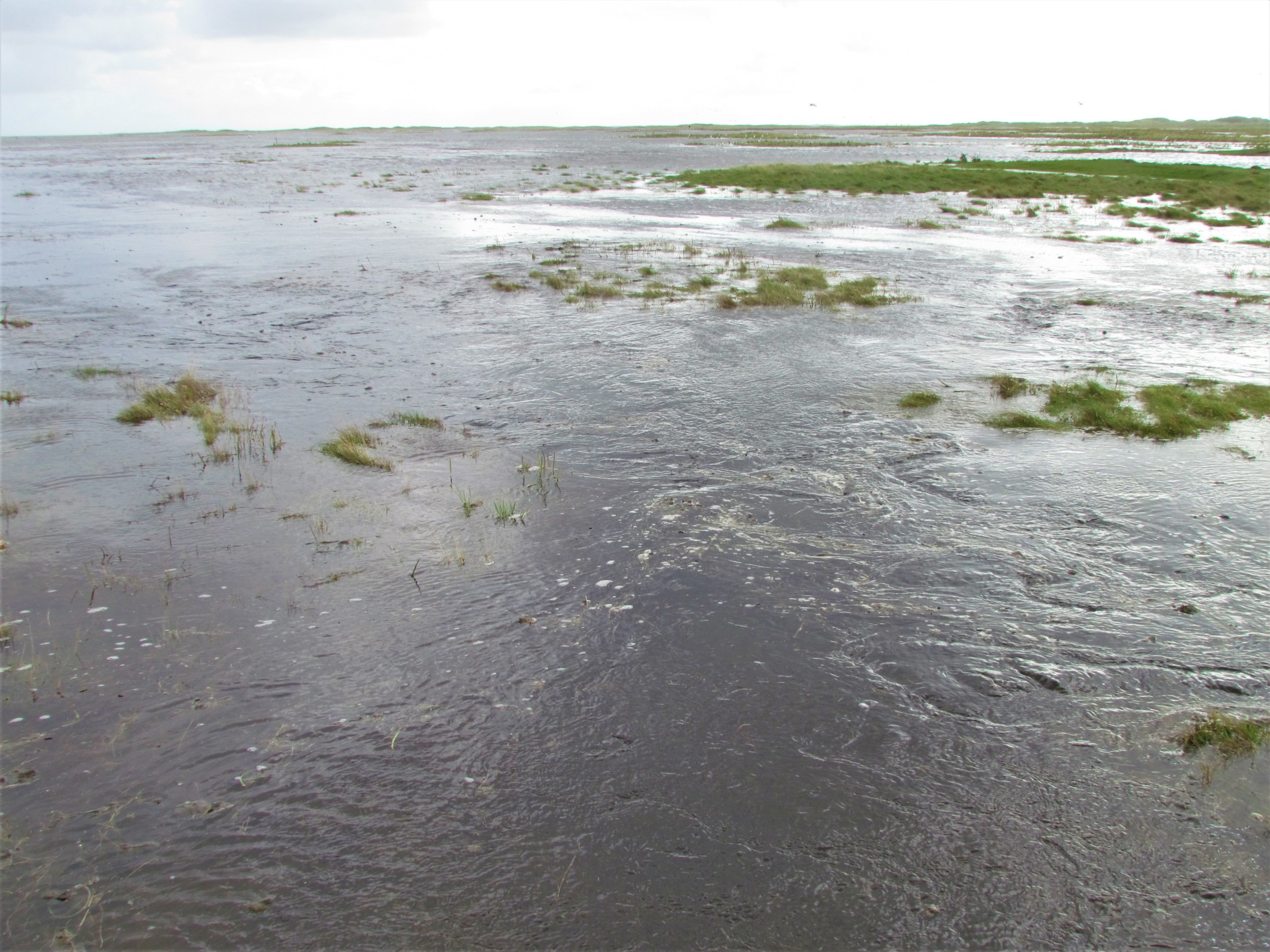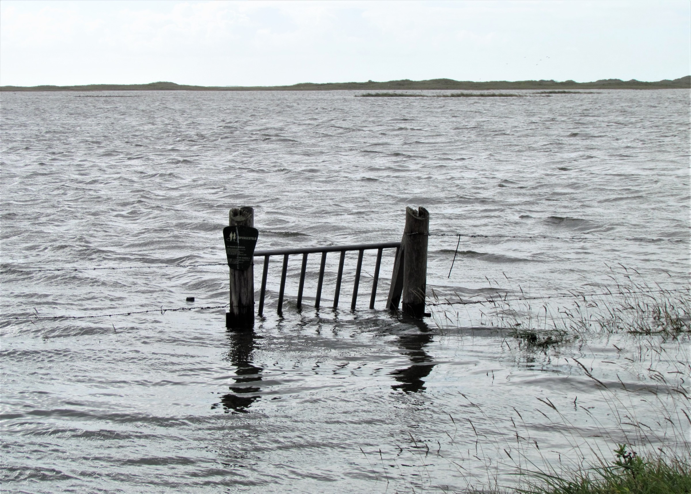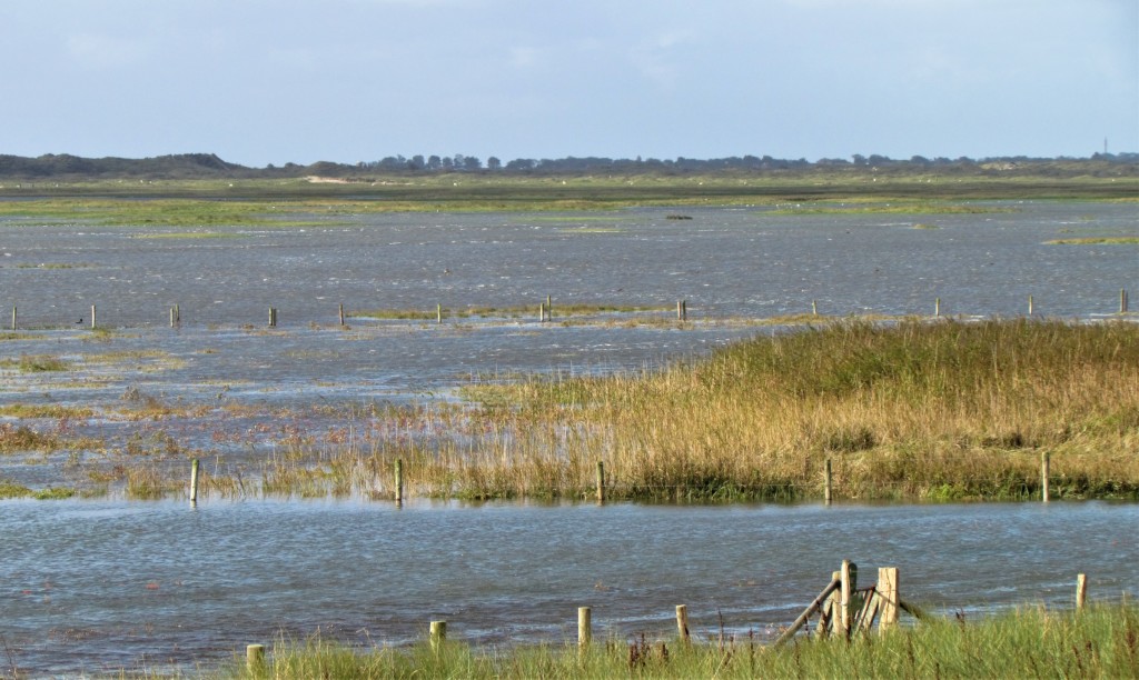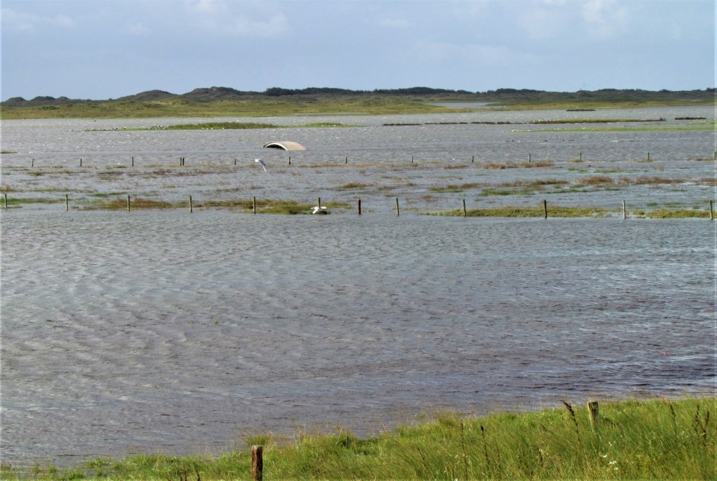 Het laagste stuk Oerdkwelder in de verte, dat door de gasboring een halve meter is gezakt, staat al helemaal blank.