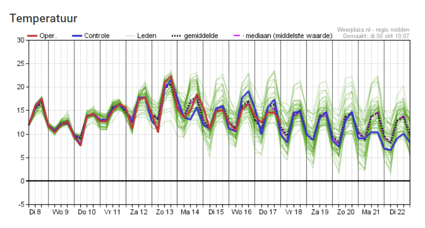 Er zijn meer leden voor de warmere optie gegaan zondag. In het zuidoosten zelfs in de buurt van de 25 graden.