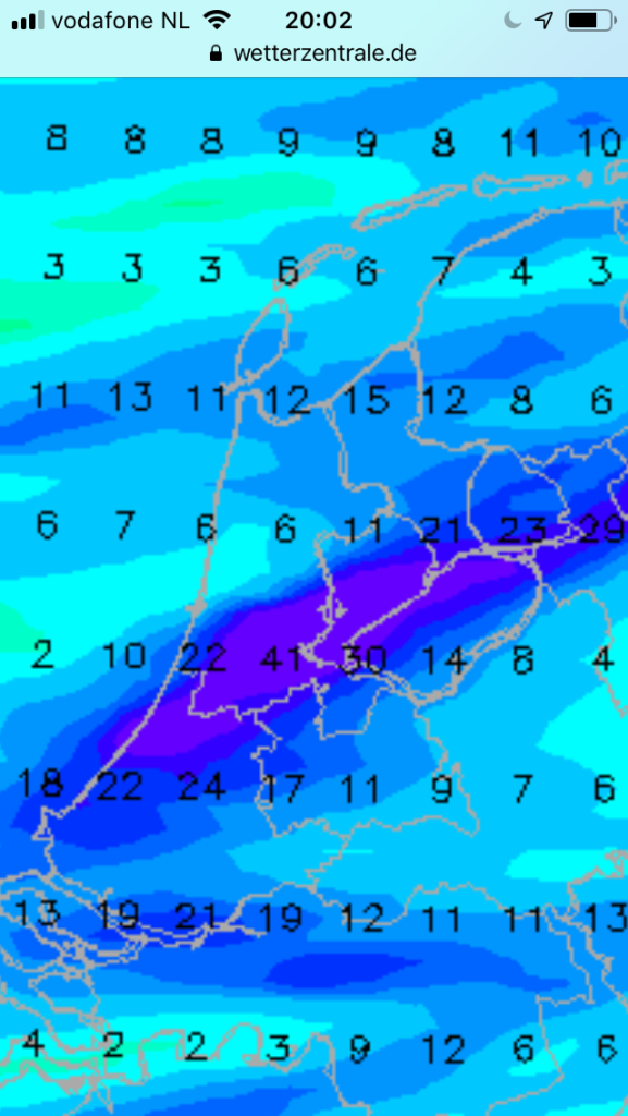 De neerslaghoeveelheden in deze GFS kaartjes altijd door 10 delen