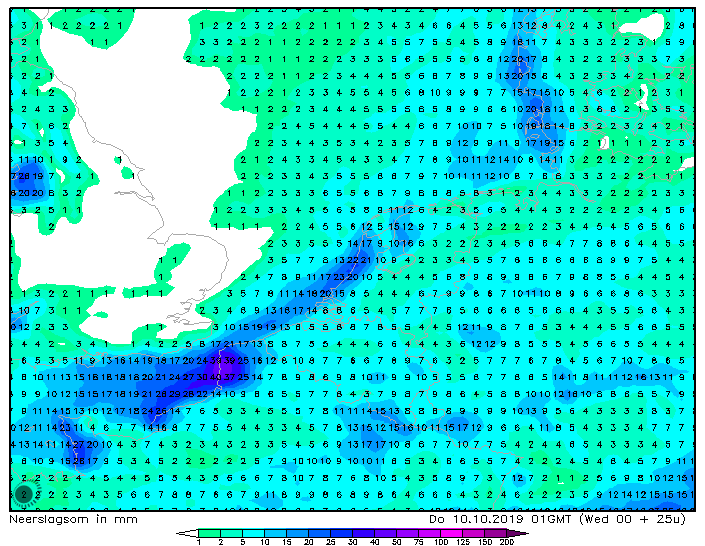 5 mm .. buien kiezen iets teveel het zuiden. geen 10-15 zoals verwacht