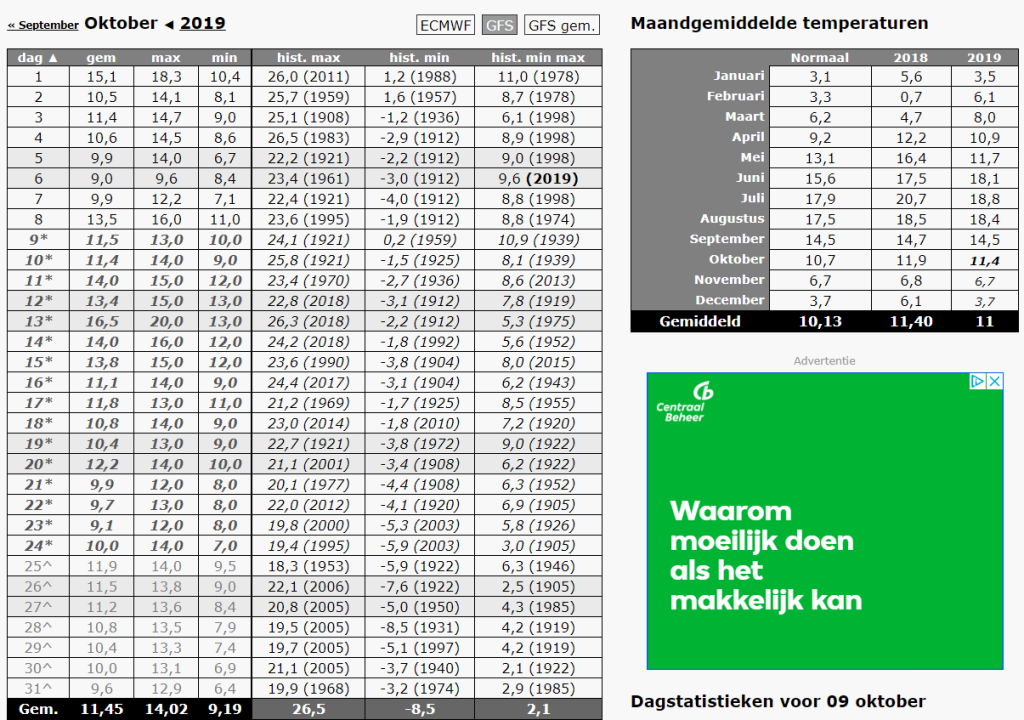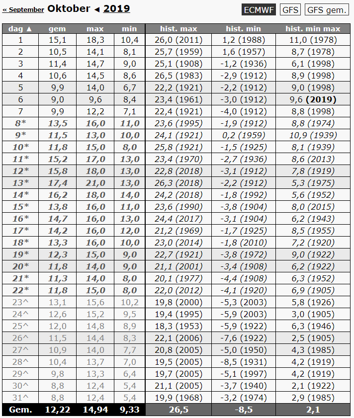 Zou een top-10 notering kunnen worden volgens het Europese model. GFS is een stuk minder zacht, maar nog wel flink boven de normaal.