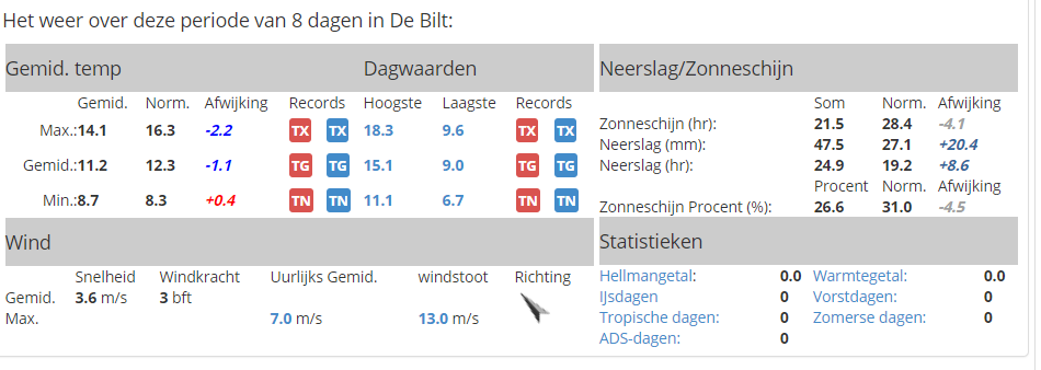 Vooral de maximumtemperaturen blijven deze maand flink achter bij de normaal