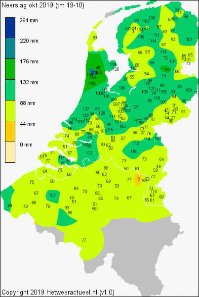 Komt niet erg overeen met de hoeveelheden hier in de regio. Blijkbaar heb jij net alle buien vol over je heen gehad? Weerstation Vijverberg hier achter zit deze maand op 67 mm en ik nu 64 mm. Dis die waarden kloppen wel.