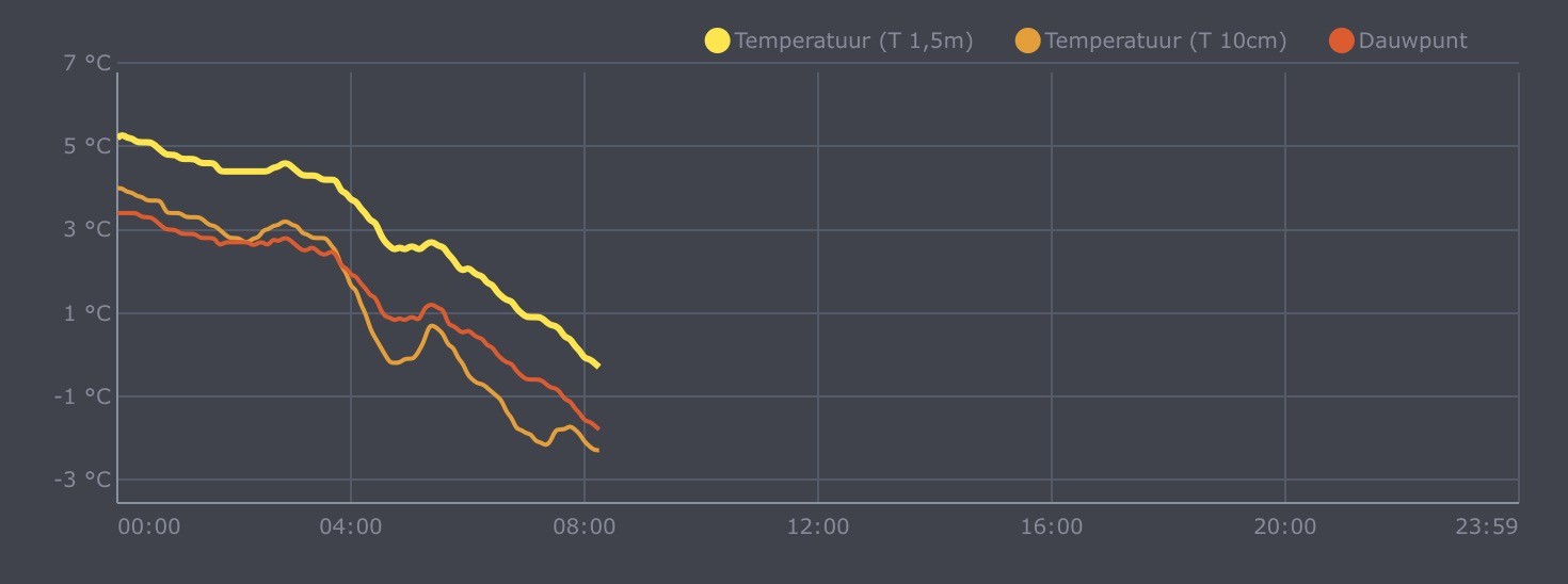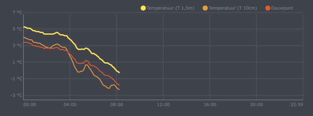 Goeiemorgen. Tact 2,8°C tmin 2,5°C en grondvorst