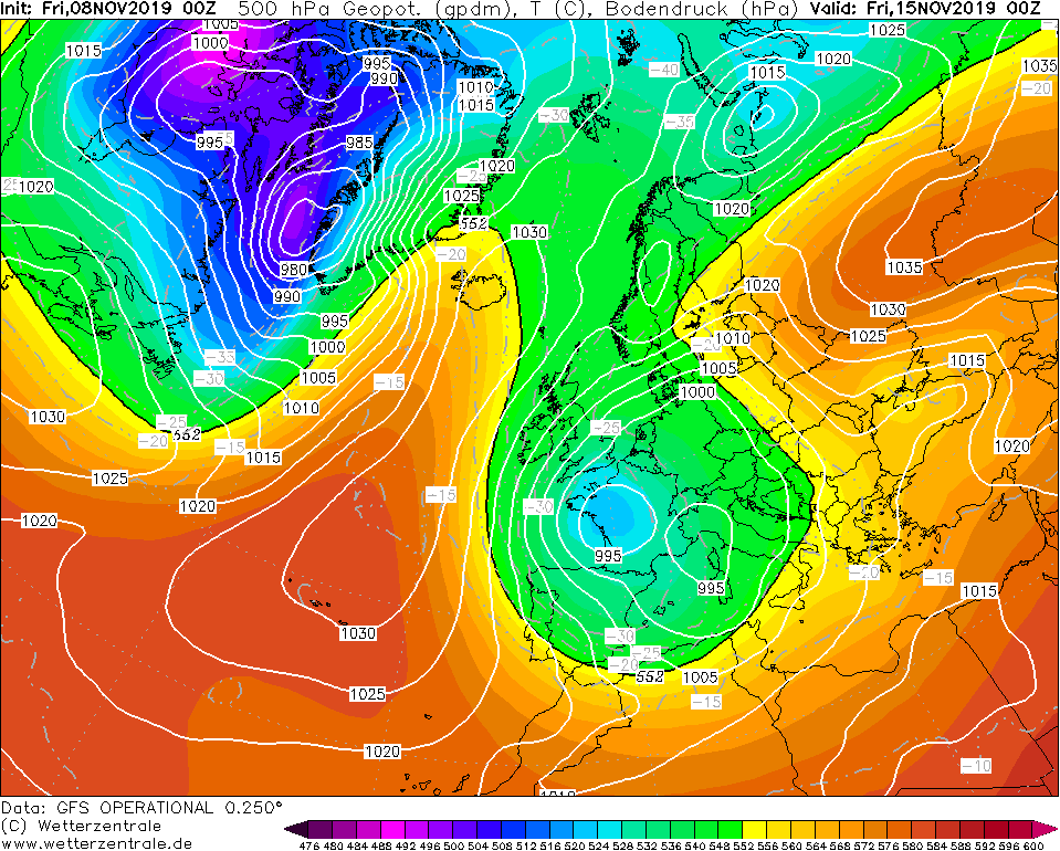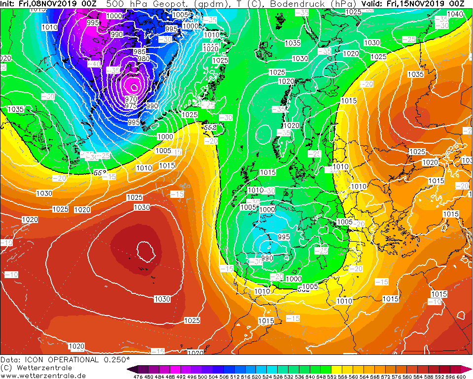 Duikend laag en stijgende luchtdruk ten noorden van ons. ICON liet dit gisteravond al zien. Buiten de betrouwbare termijn, maar misschien iets om rekening mee te houden.