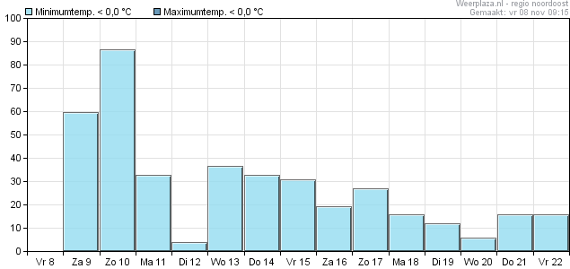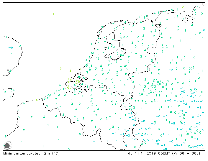 MOS wil voor het noordoosten niets weten van vorst in de nachten naar zaterdag, zondag en maandag. ECMWF denkt er iets anders over.