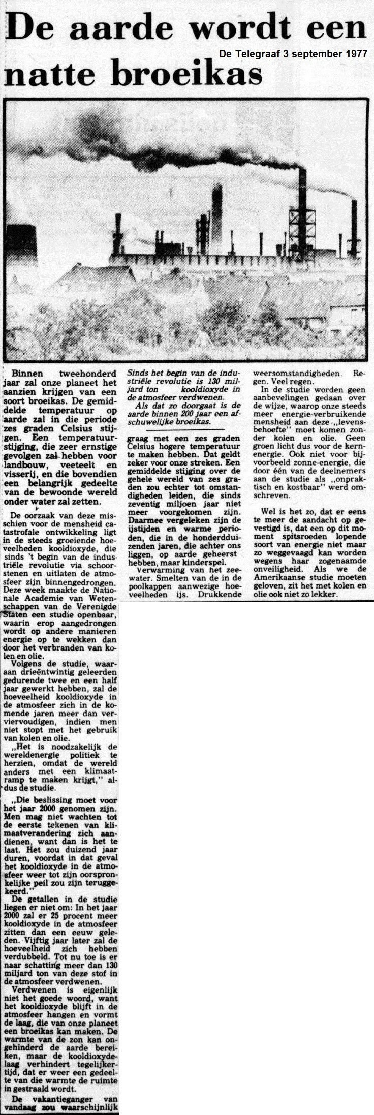 Om een totaalbeeld te krijgen wat er in de wetenschap speelt is een algemeen nieuwsblad natuurlijk nooit de aangewezen informatiebron, daar zijn wetenschappelijke vakbladen voor. Vroeger werd er over dit onderwerp minder aan opiniekweken gedaan, ik heb hier wel eens een Telegraafartikel over opwarming uit de jaren '70 geplaatst. Het is ondenkbaar dat deze krant anno nu nog zo over dit onderwerp zal berichten.