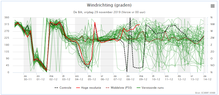 Alleen woensdag is de windverwachting onzeker (vanwege het hoog waarvan de kern langs Nederland passeert), daarna lijkt het vooralsnog gewoon weer op zuidwestenwinden uit te draaien.