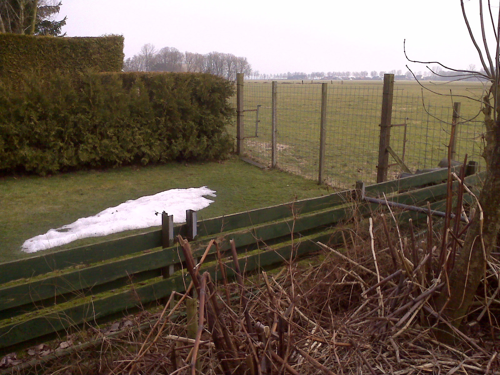 Hier was het een winter met een gemiddelde van -0,2. Het predicaat 'streng' is daarmee regionaal gerechtvaardigd. Het verschil met De Bilt (1,1) was groot, zoals meestal bij Grote Winters. Hele koude dagen (Tx <-5) waren er nauwelijks, wel heel veel dagen met nipte ijsdagen of Tx net boven nul. Hellmanngetal (149) viel daardoor 'mee' of was althans bescheidener dan de duur deed vermoeden. Van half december tot half februari is de winter in mijn beleving namelijk nooit weggeweest. Ja, als ik nu naar het temperatuursverloop kijk tikt de Tx soms de 5 graden aan, maar ik denk dat ik dat destijds verwaarloosd heb omdat de winter aldoor na een paar dagen weer inviel. Bovendien bleef het ijs sterk genoeg. En 19 maart lagen er nog resten van de imposante sneeuwduinen (zie foto). Die maartmaand zag het gras bruin en kwam het imposante gangenstelsel bloot te liggen dat de muizen in de weilanden hadden gegraven onder de sneeuw.