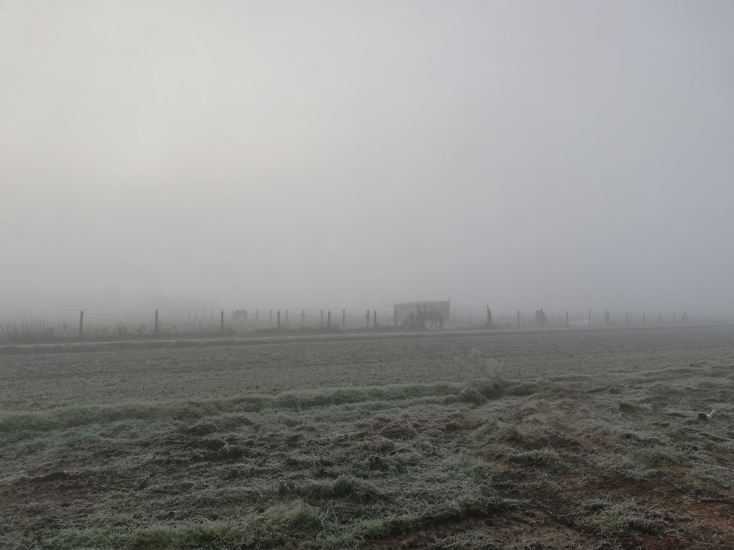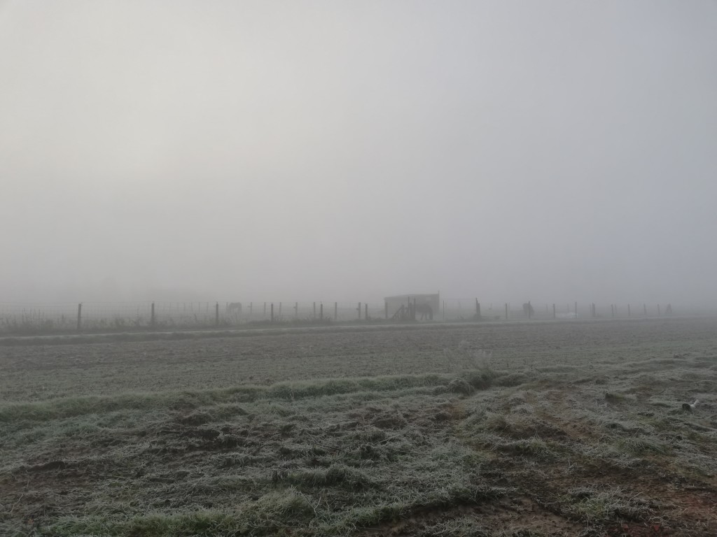 Heerlijke sfeer. Mist en vorst.