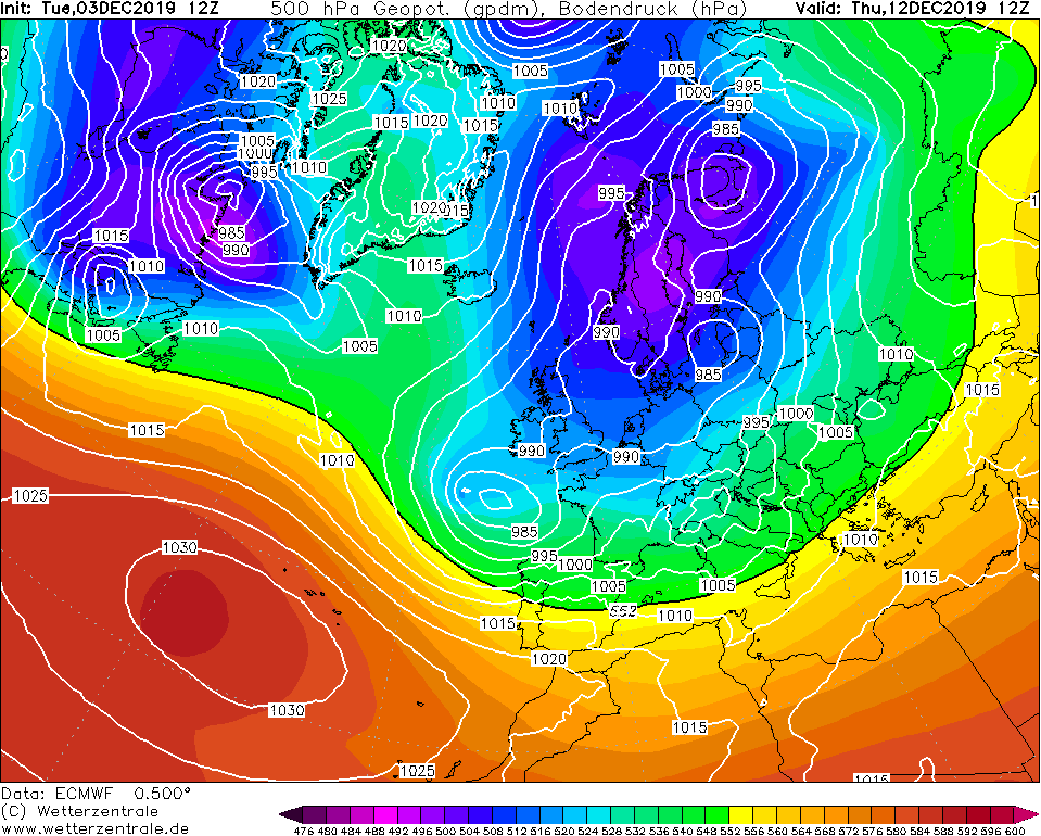 Waardoor de aanvoer N/NO wordt als ik het goed zie? De jet (552dam lijn) zakt in ieder geval tot over het noordelijkste puntje van Afrika...