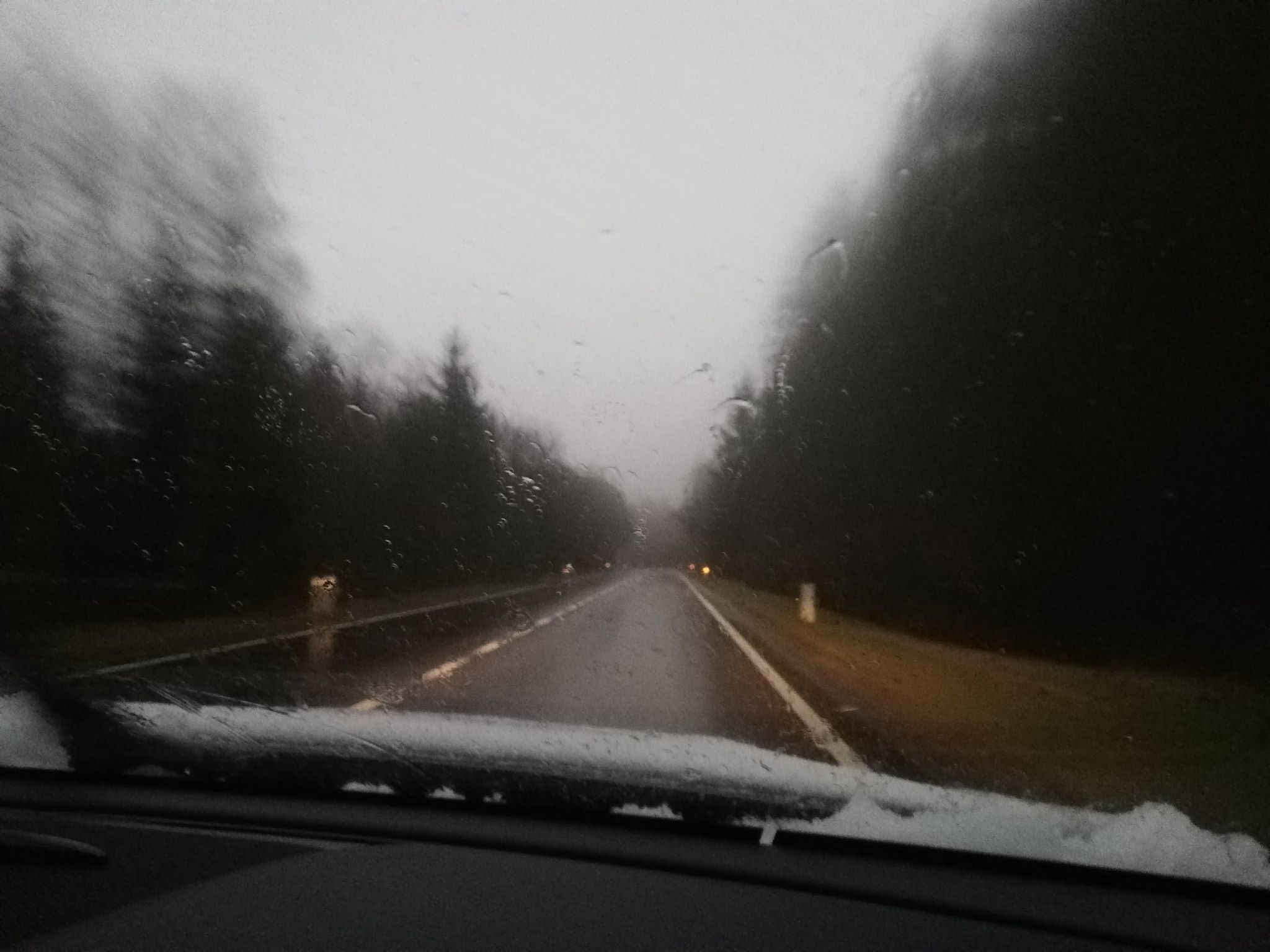 4.Foto op 575m waar geen sneeuw meer lag. (regen/ flatsen op de voorruit)