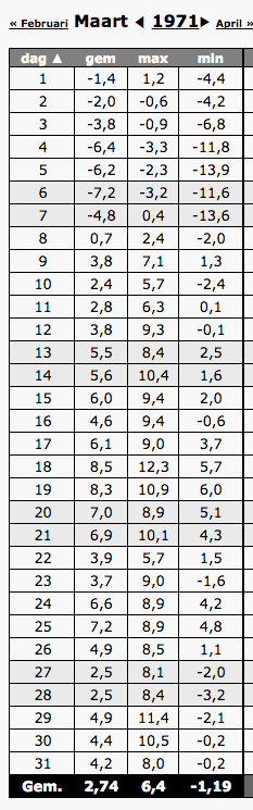 Berucht is uiteraard de eerste decade van maart '71 met een aantal ijsdagen en wellicht de koudste eerste decade van maart sedert de metingen.