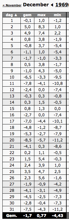 December '69 springt er wel uit met een Tg van -1,7 °C en pas voor het eerst benaderd door december 2010 met -1,2 °C.