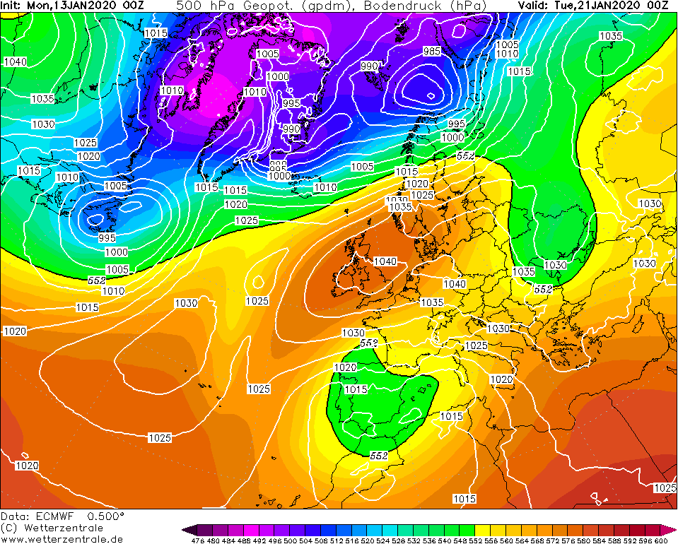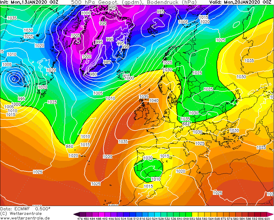 Oper00 van het ECMWF heeft ook wel zin in een winters avontuurtje