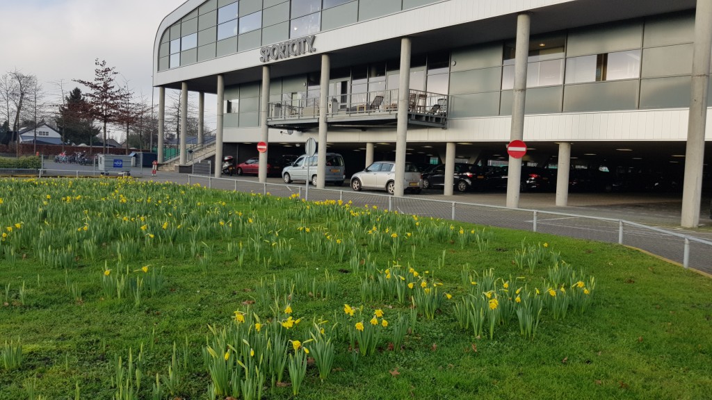 Vogeltjes fluiten merkbaar meer in de ochtend en de narcissen staan in bloei bij de sportschool.