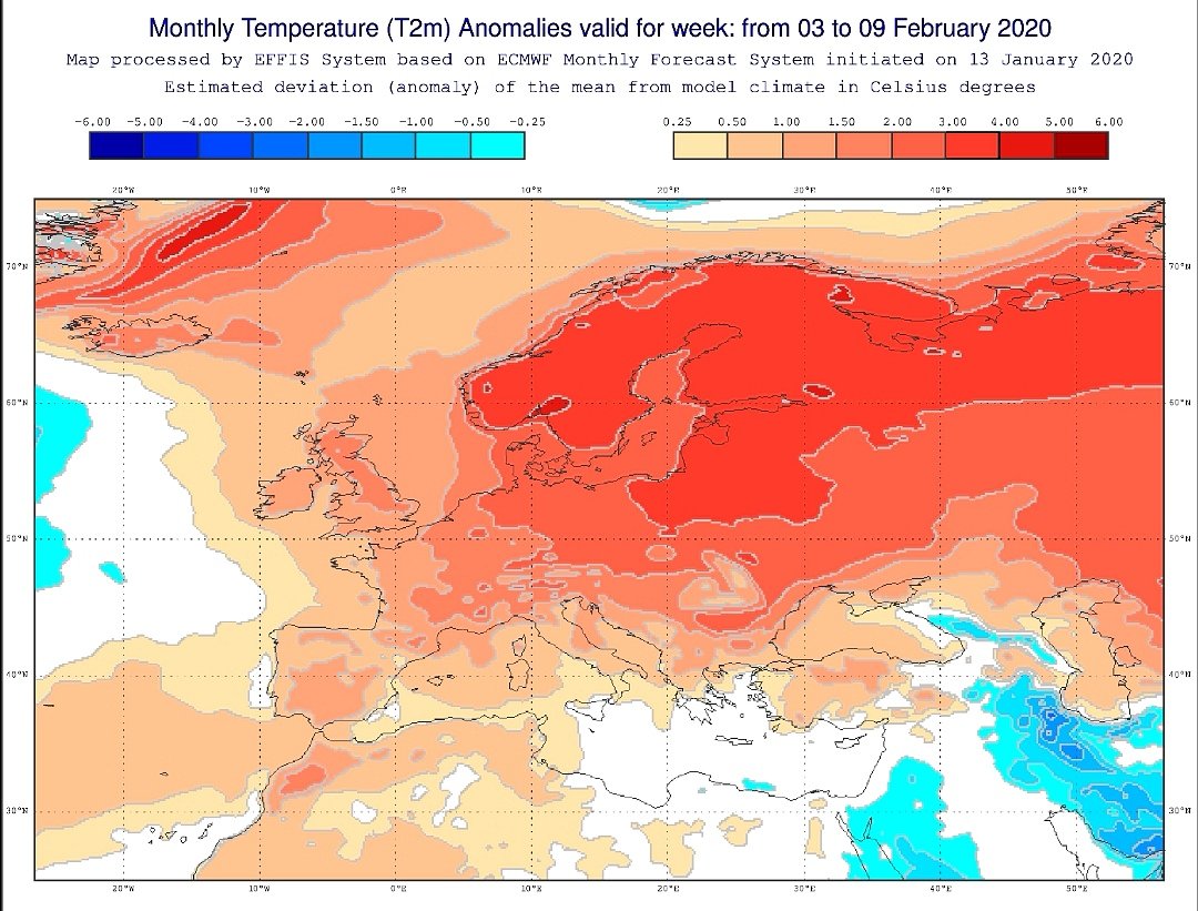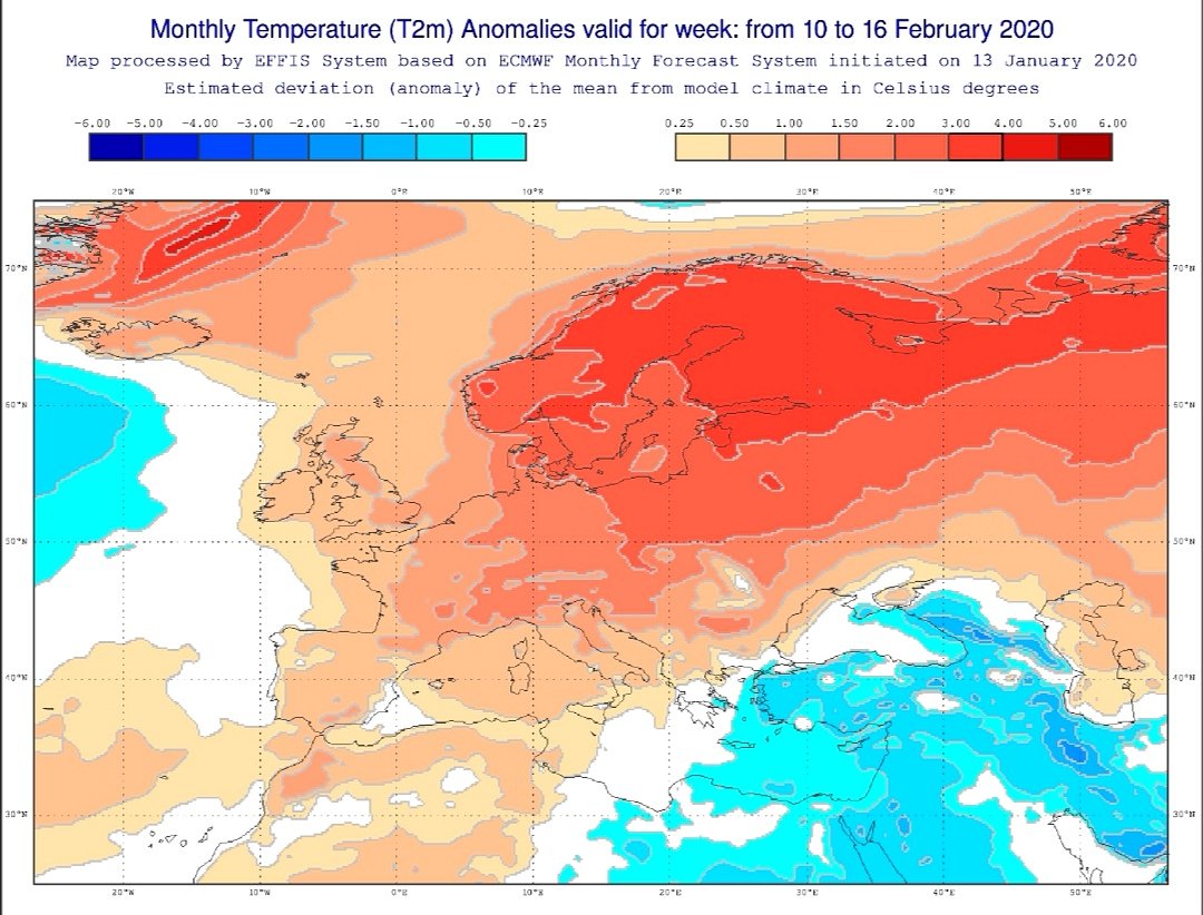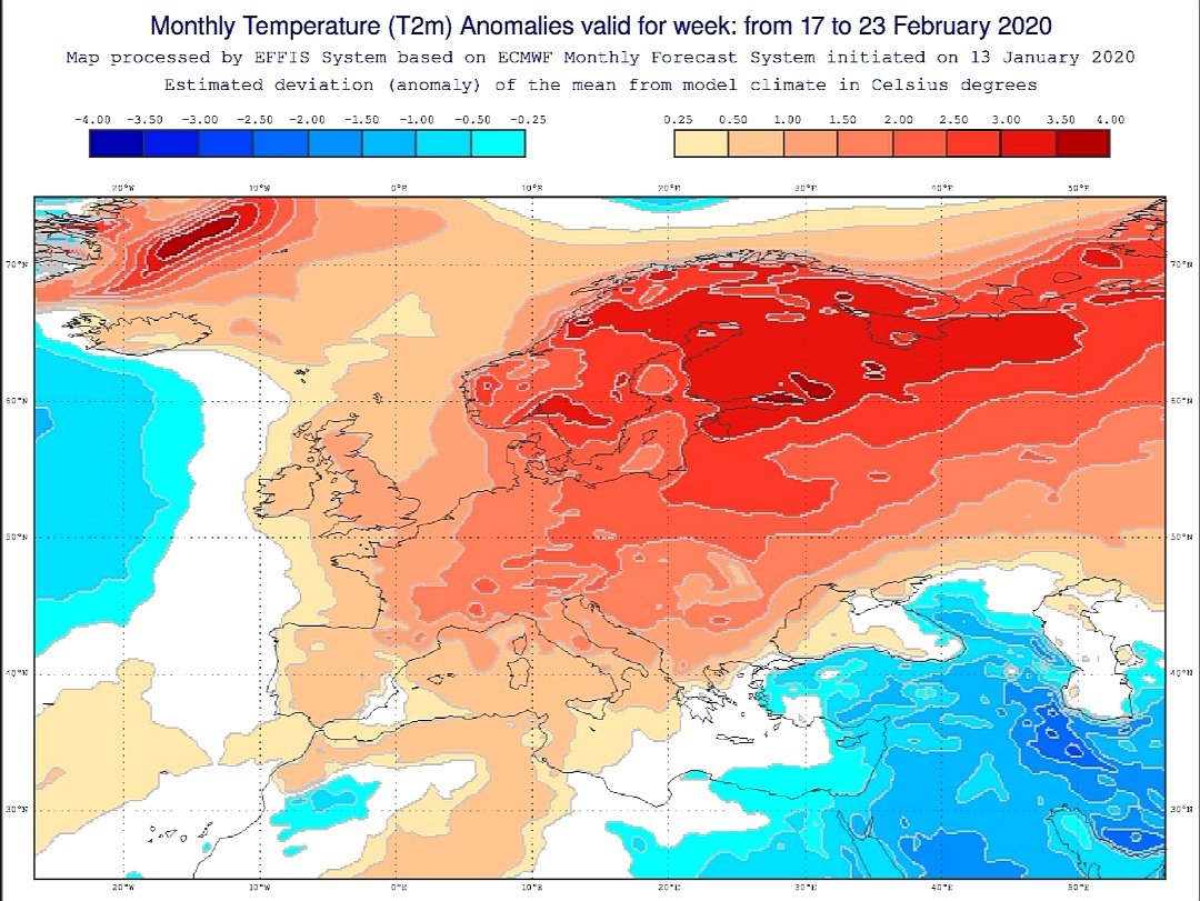ECMWF is milder voor jouw regio. 2c bovengemiddeld voor februari