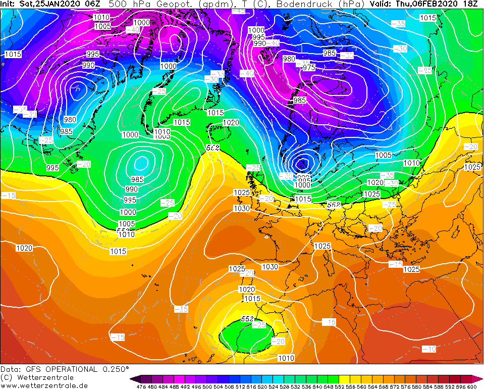 ...er kan een rug ontstaan op de oceaan. Je ziet al de oplopende geo's tussen Groenland en IJsland op de +240 kaart. Maar dan hebben we een rug maar nog geen kou. Dus binnen de termijn van de EC-reeks zit er niets in dat ons winter brengt. De cliffhanger: Als de EC clusterscenario's gelijk krijgen is een NW-stroming aannemelijk, omdat er in die clusters vaak een rug boven IJsland en een trog boven Scandi komt te liggen. Maritiem polair zou er dan uit kunnen rollen.
