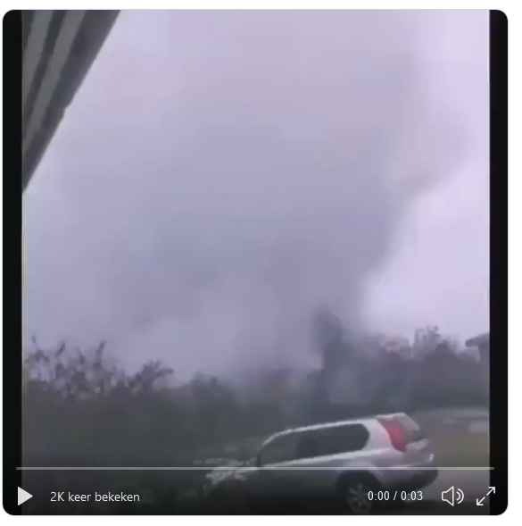Vorige week tijdens die zware buien. Zo iets heb ik nog nooit gezien wat een muur die komt aangevlogen met wind water en hagel.