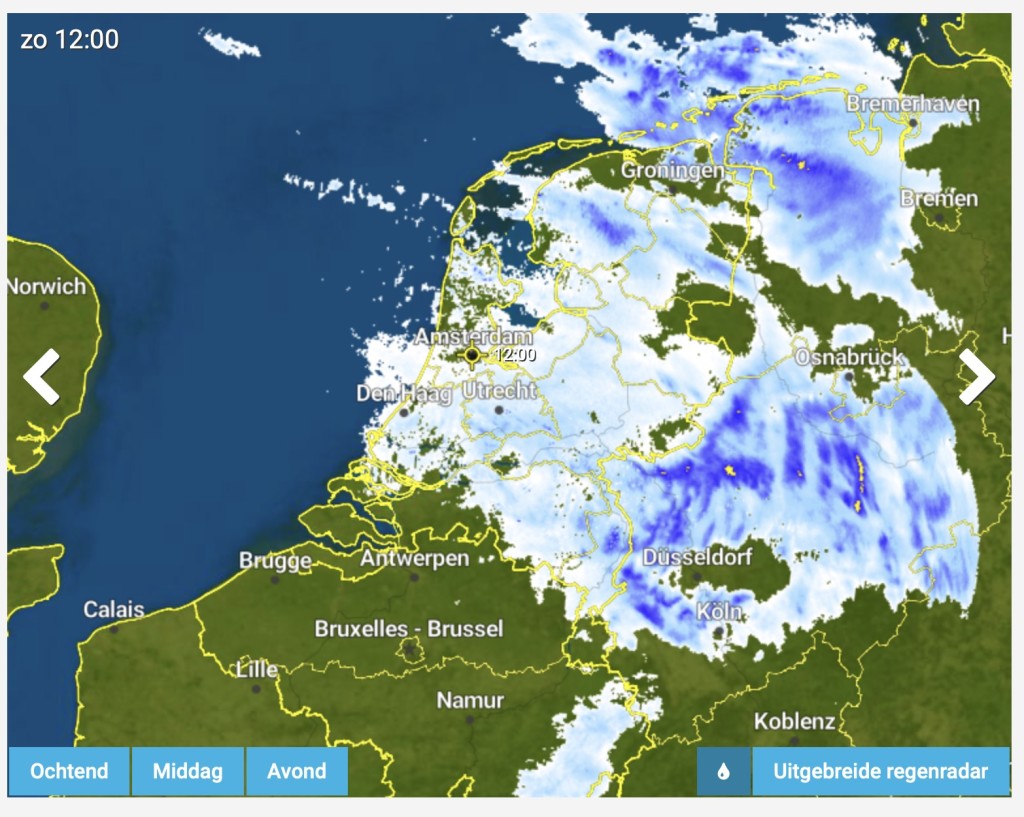 een snelle vergelijking: Weerplaza, Buienradar motregen, buienradar