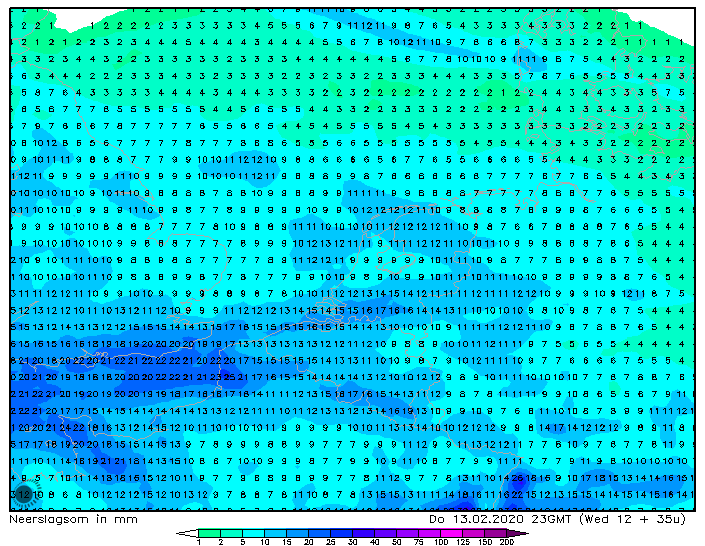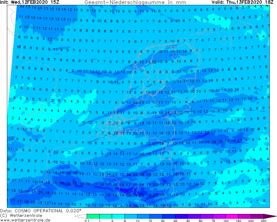 Cosmo 15Z run, cumulatieve neerslag tot donderdag 19u: