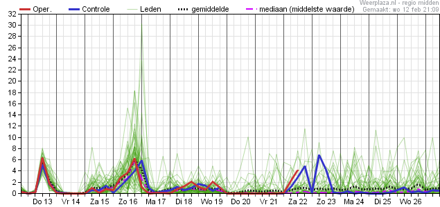 voor zondag de 16e nog een kans op een datumrecord voor De Bilt (staat niet zo scherp met 13,3 graden uit 2019) Wind en neerslag zijn daarnaast de blikvanger voor deze dag.