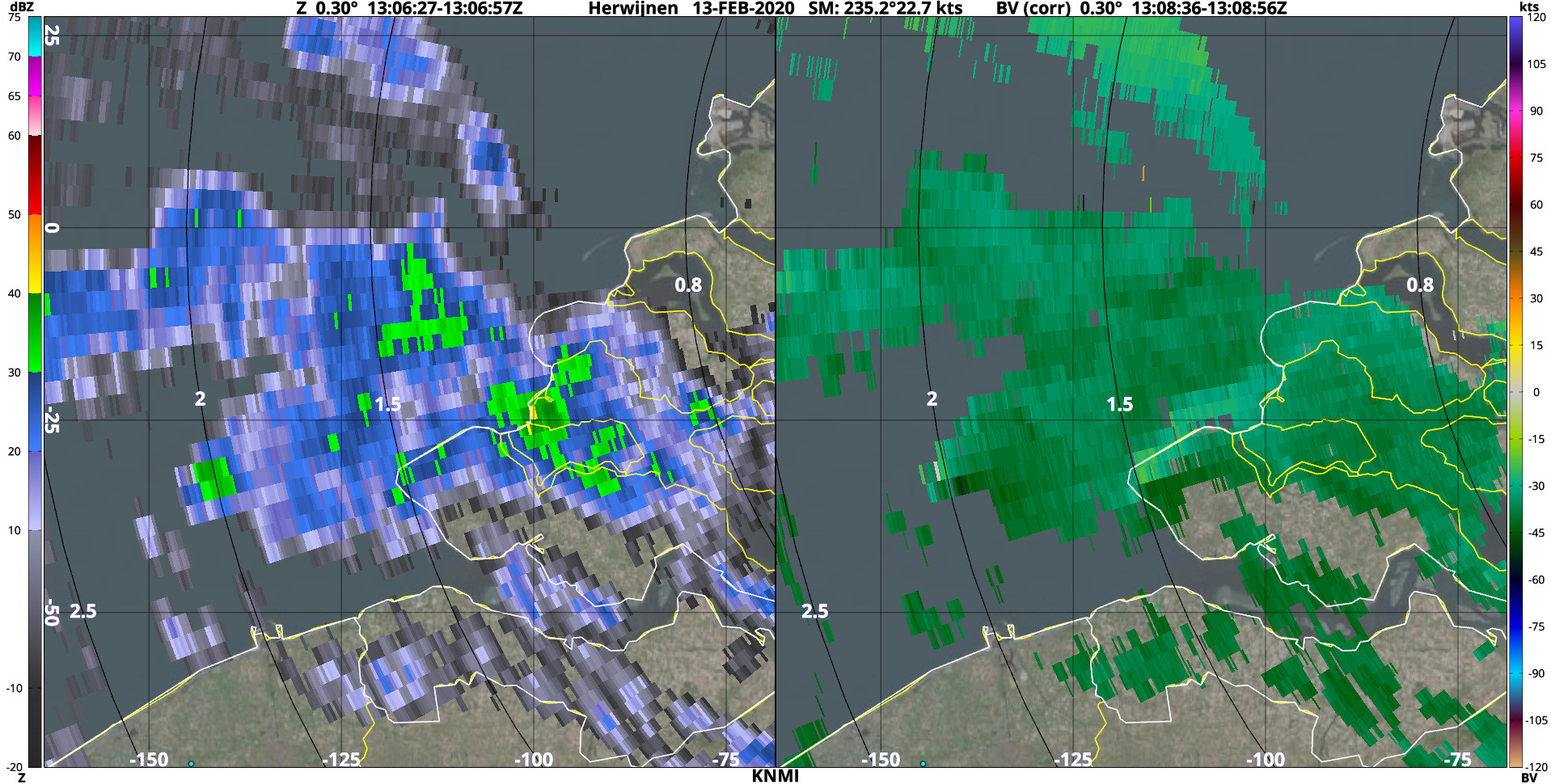 In principe bestond hij al zeker 2.5 uur voordat hij Cabauw aandeed, ver terug boven de Noordzee zoals het tweede radarbeeld laat zien.