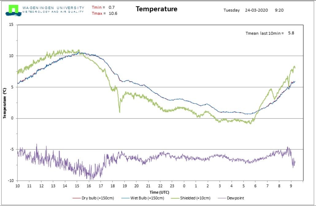 ...wellicht vanwege een beschutte opstelling? Want zelfs 'Wageningen' (Veenkampen) is boven nul gebleven en zit met een minimum van 0,7 graden, maar 0,3 graden onder mijn meting.