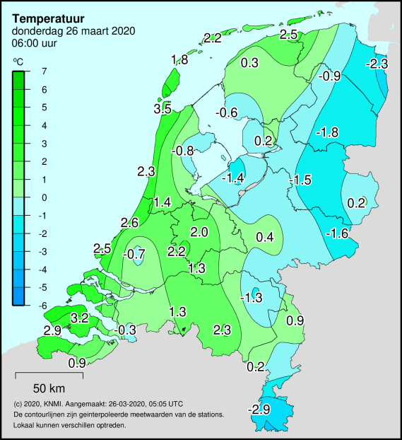 Ruurlosebroek zat met -0,8 graden iets lager.