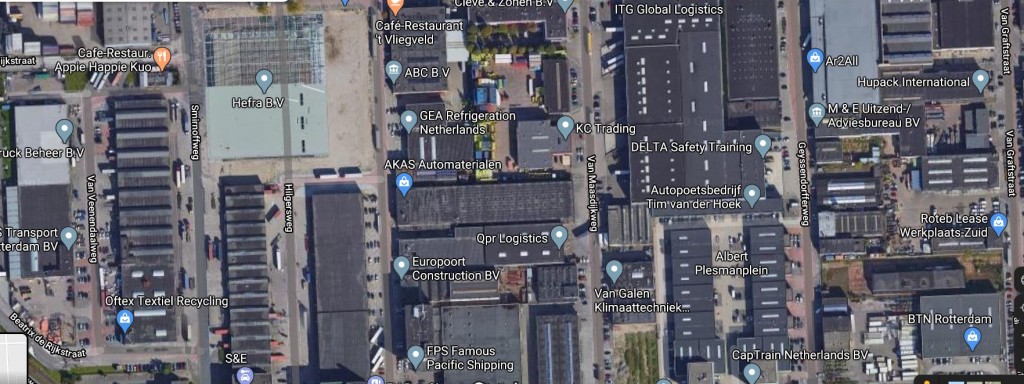 Eens. Ik zou sowieso voorkeur hebben om zoveel mogelijk velden te ontzien en daken vol te gooien met zonnepanelen. Ik vind het ook wel een beetje landschapsvervuiling. In Rotterdam willen ze een drijvend zonnepark midden in de stad aanleggen. Waarom? vraag ik me dan af. Er zijn in de Waalhaven (foto) alleen al miljoenen m2 dak beschikbaar op de opslagloodsen.