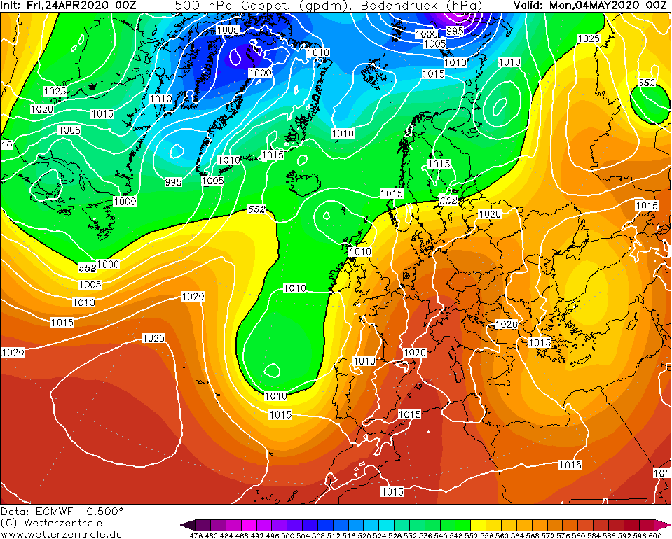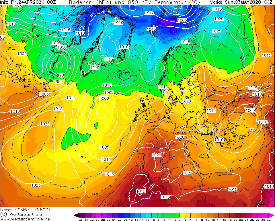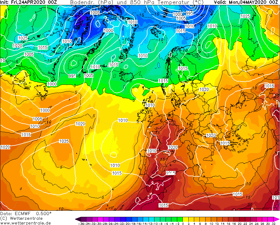 Hoge bovenlucht temperaturen door flinke warmtetransport vanaf het Iberisch schiereiland. Vrijwel in alle modellen komt dit scenario op een of andere manier terug maar de termijn is nog fors. GFS Oper laat ook zoiets zien maar minder uitgesproken en véél wisselvalliger. Al met al wel boeiende kaarten deze morgen!