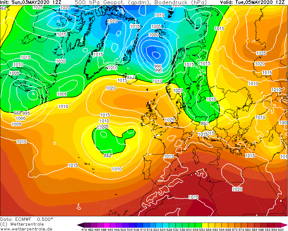 Eens kijken of deze wel van de Atacama route afloopt.Op de 48u het onvermijdbare 88ste hoog van dit voorjaar wat op de kaarten prijkt:De trog west van Biskaje voorlopig van geen invloed.