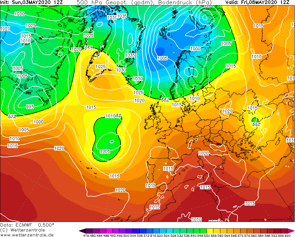 met een zwakke wzw hoogte stroming en vermoedelijk droog. Hierna wordt het spannend, het Groenlandhoog bouwt op, zal er een laag ontstaan bij ons op het grensgebied van 2 luchtsoorten voordat het hoog z'n invloed naar het zuiden uitbreidt?