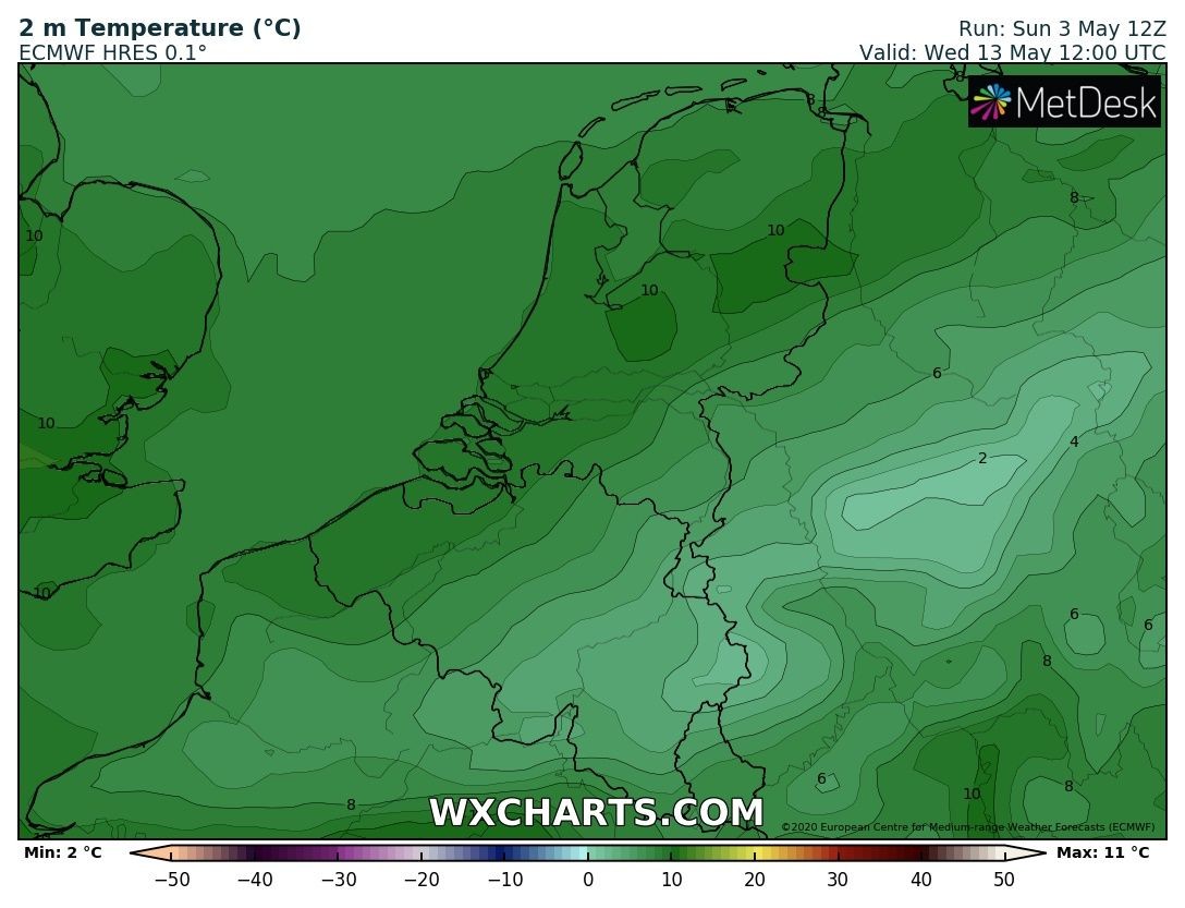 Arme Wim, dit wordt een doodklap... Pak de bananen maar weer in! Maar; 10 C is haalbaar in het midden en noorden!