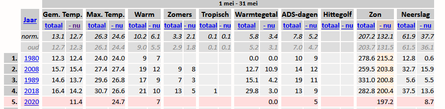 De Bilt. In de tabel is ook te zien dat 1980 in deze periode bijzonder was. Extreem veel zon en vrijwel geen neerslag.