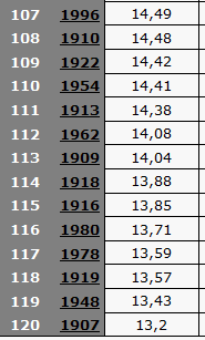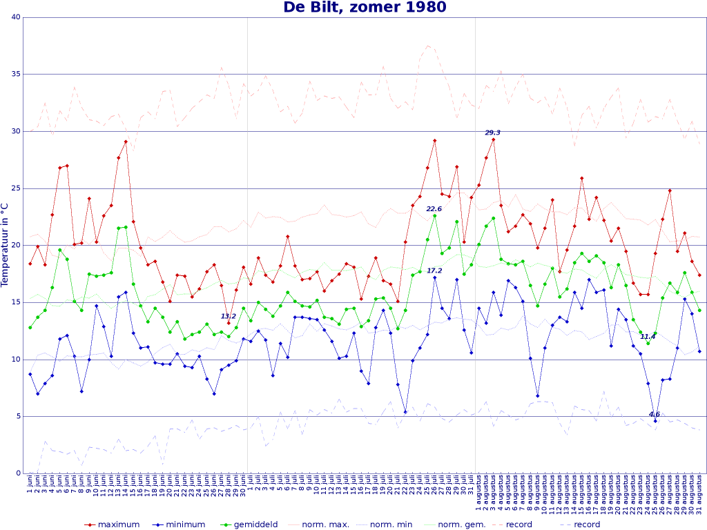 Hieronder de zomer en tabel van de koelste 16 juni tm 15 juli. 1980 zit daarbij. Ook duidelijk dat we een ander klimaat hadden.