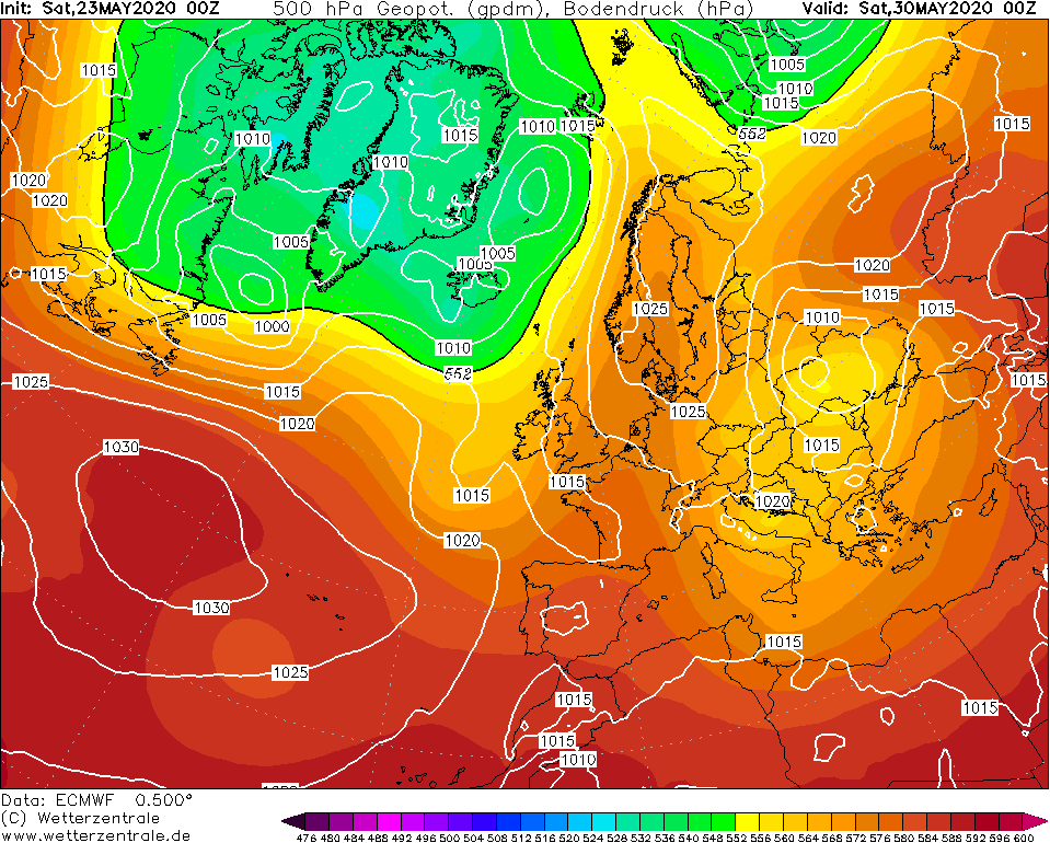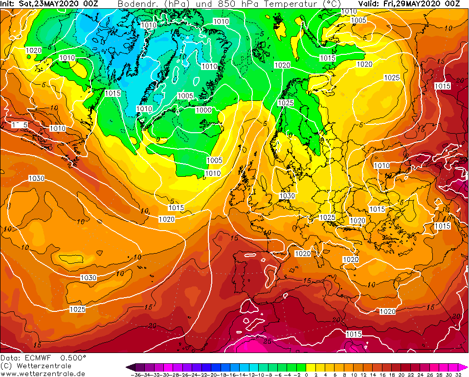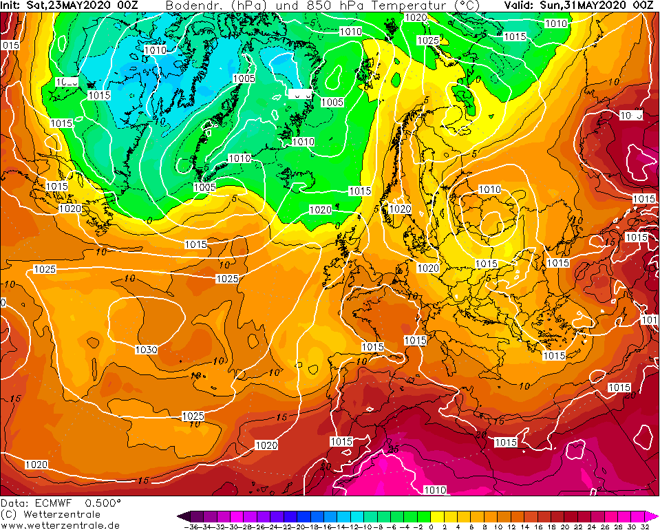 Maandag tot en met donderdag over het algemeen warm tot zomers (20-25°C). Daarna mogelijk wat warmer door aflandige aanvoer. Neerslag valt er zondag wellicht maar veel meer dan 5 mm (wat al veel is voor deze tijd), zou ik niet verwachten. Vandaag en morgen wat koelere dagen met het kwik tussen 15 en 20°C.
