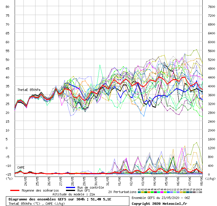 Die dagelijks meer dan 500 j/kg verwachten. Hopelijk langzaam meer ondersteuning al is het wel erg ver weg. Komende tijd veelal tussen 20 en 25°C wat normaal tot iets te warm is voor eind mei/begin juni.