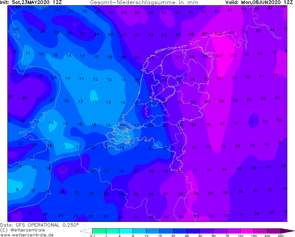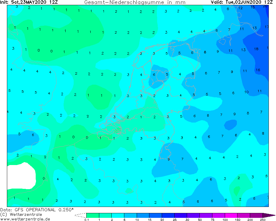 Oper GFS2312 - Neerslag komende 10 dagen is letterlijk millimeter werk