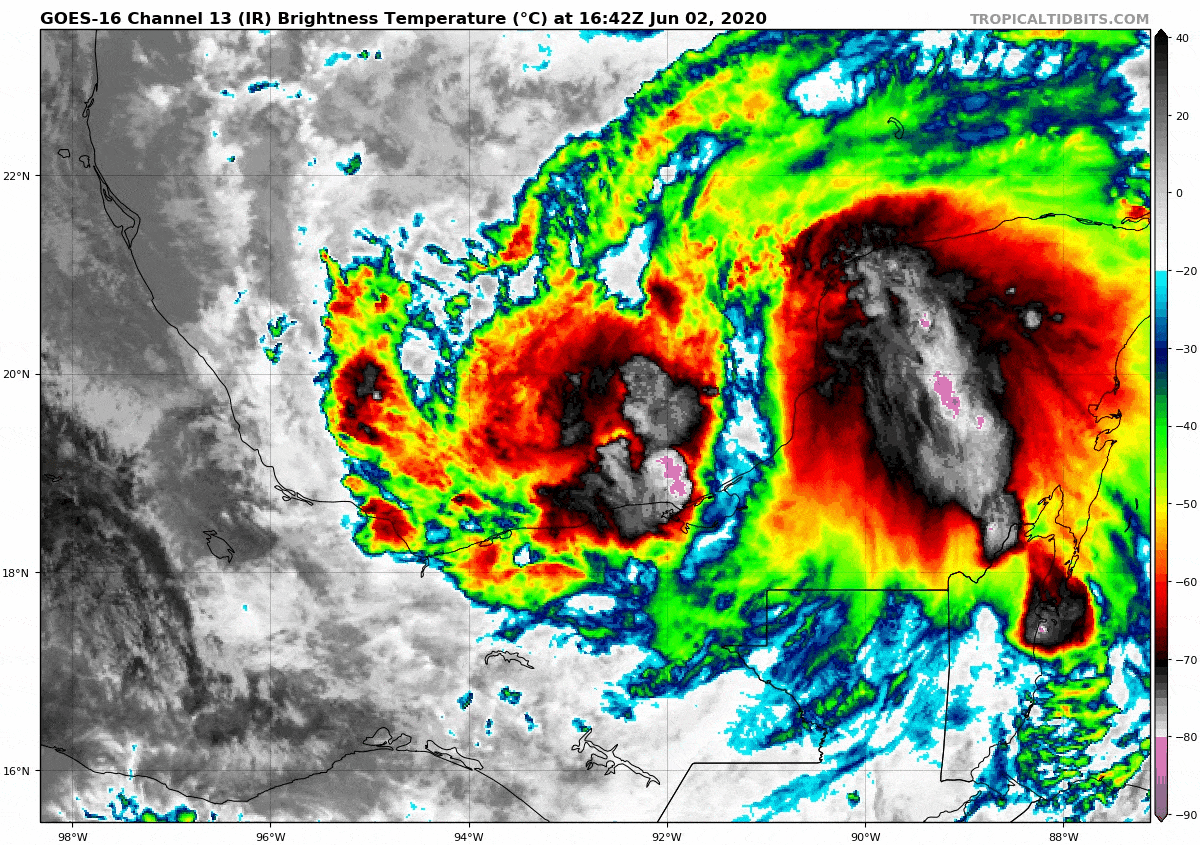 Dit stormsysteem vormde zich vanuit de resten van tropische storm Amanda, een storm in de Pacifische Oceaan. Deze storm kwam twee dagen geleden aan land in Guatemala en heeft daar tot veel schade gezorgd en 14 doden. De storm viel uit elkaar boven het bergachtige landschap, maar de afgelopen week was de Atlantische Oceaan al extreem onstuimig en actief en de resten van Amanda waren de laatste druppel. Vandaag is vanuit een onweerssysteem dat bestond uit resten van Amanda en onstabiliteit van de Atlantische Oceaan een tropische depressie ontstaan die van het land af is gegaan en in het water binnen enkele uren een tropische storm werd. Hoewel de impact van Arthur en Bertha relatief klein was (ook al was er bij Bertha helaas wel een dode te betreuren), zijn de verwachtingen voor Cristobal een stuk gevaarlijker, ook al moet ik ook bij zeggen, onzekerder.