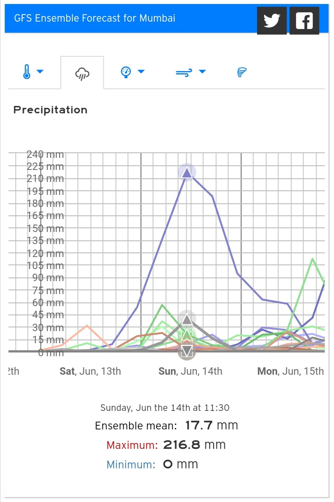 Nou, ik hoef geen 700 mm neerslag te zien binnen 24 uur hoor. Laat dat dan maar lekker een lokaal fenomeen zijn boven Doetinchem.