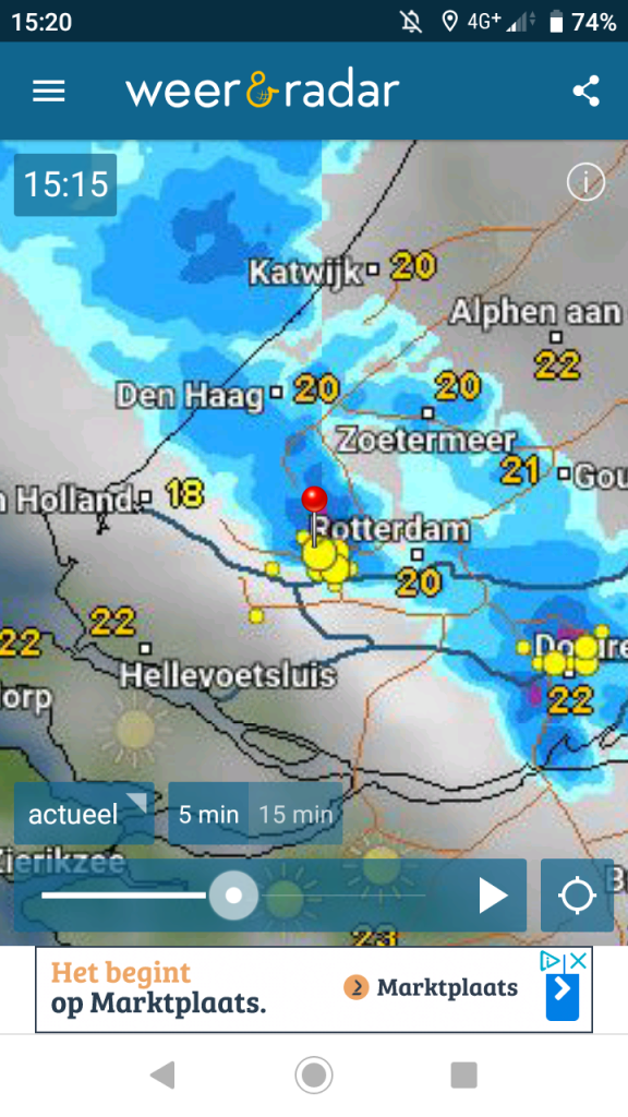 Nu al twintig minuten gietende regen, dikke druppels! Ik ben geen Stefan, maar ik stond op het balkon echt te genieten. Normaal duren dit soort buien niet lang, maar het houdt maar niet op!