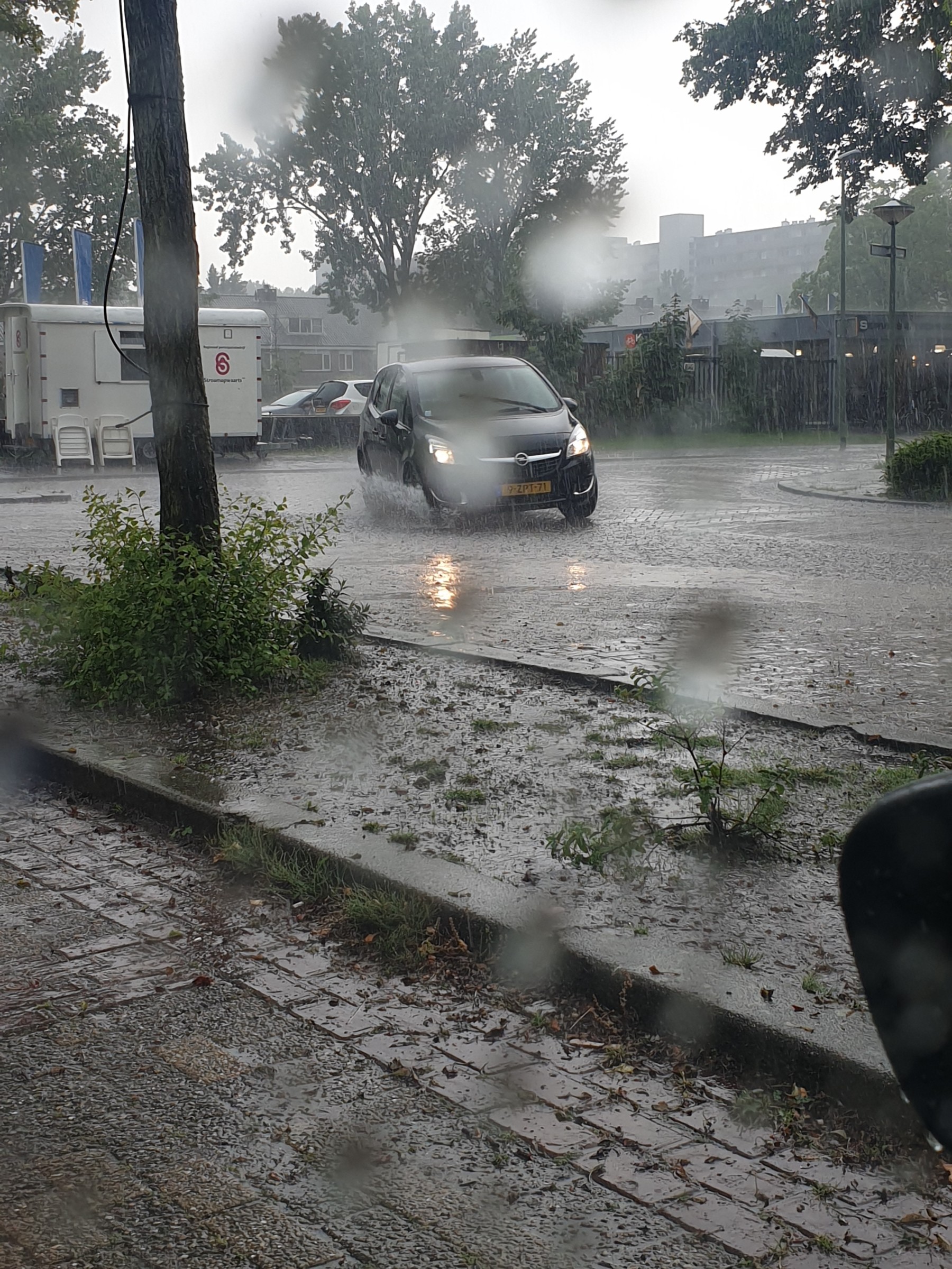 Hier ook stortregen, maar weinig fotogeniek, 1 grijze massa inmiddels